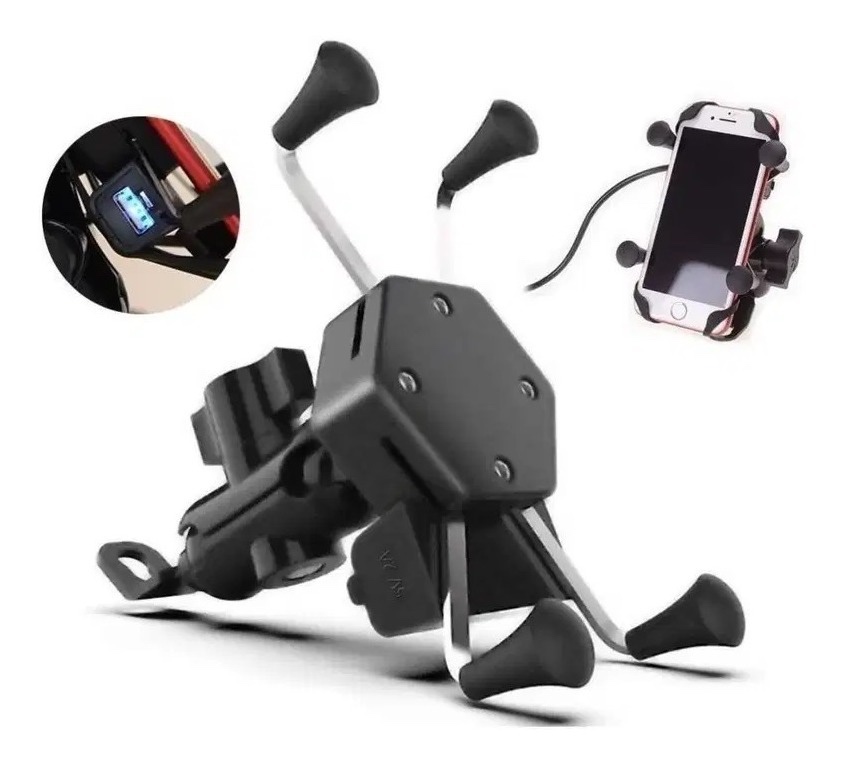 PORTA CELULAR C/BASE AJUST. 4 SOPORTES C/PUERTO USB CON CARGA 12 Vcc / SAL. 5 Vcc / 2.4A